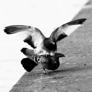 Pařící se holubi na náplavce