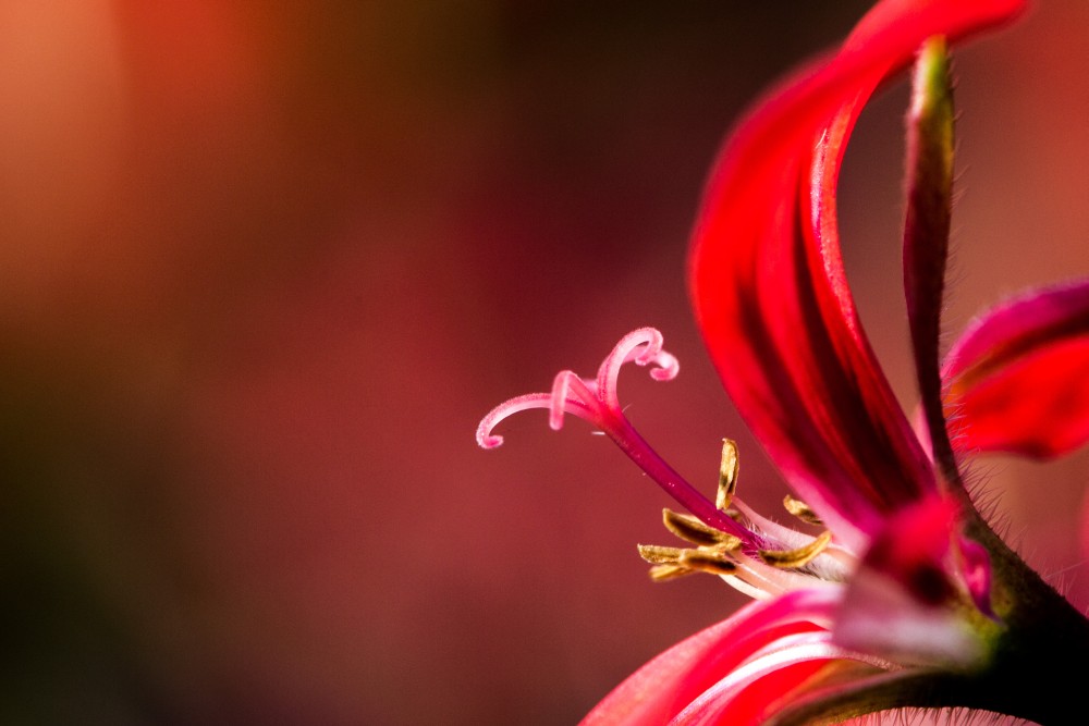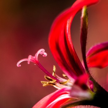 Detail červeného květu v botanický